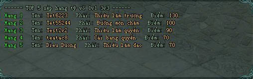 - Hạng 5 toàn máy chủ: 1500 Xu