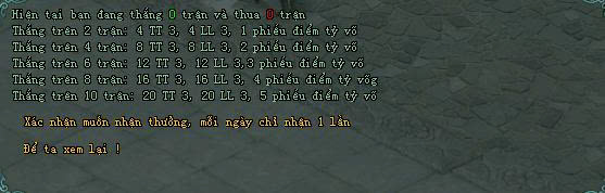 - Phần thưởng tham gia đủ 10, nếu thua >= 8 trận bạn sẽ không nhận được thưởng: